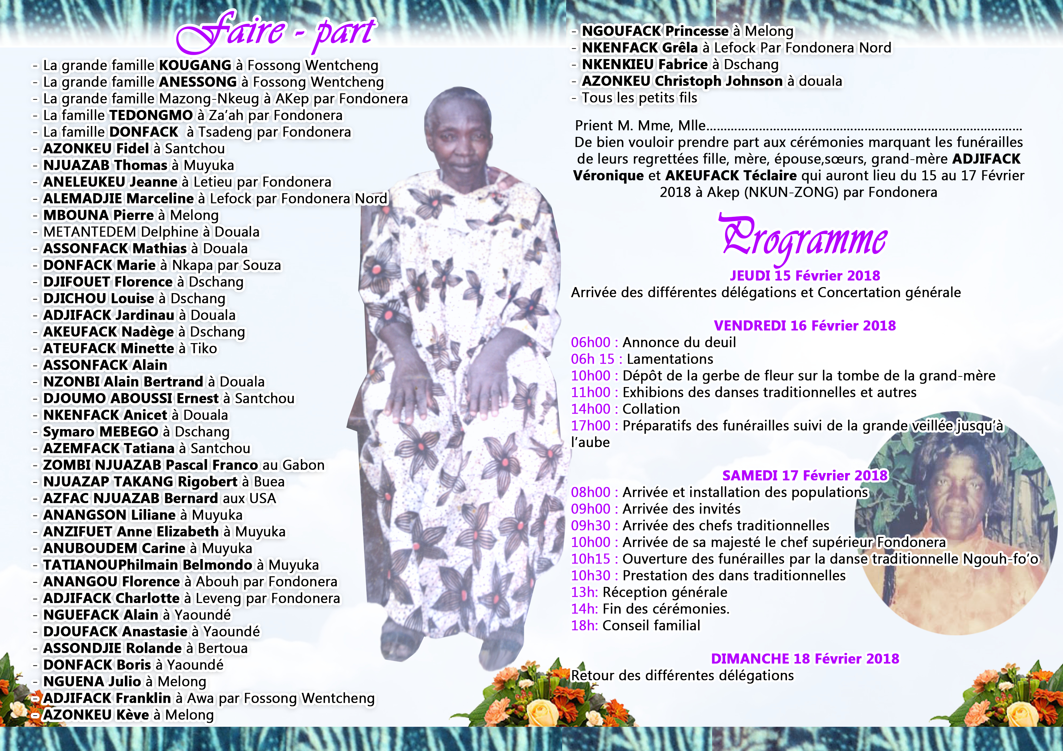 Programme des funérailles grand mère Adjifack Véronique