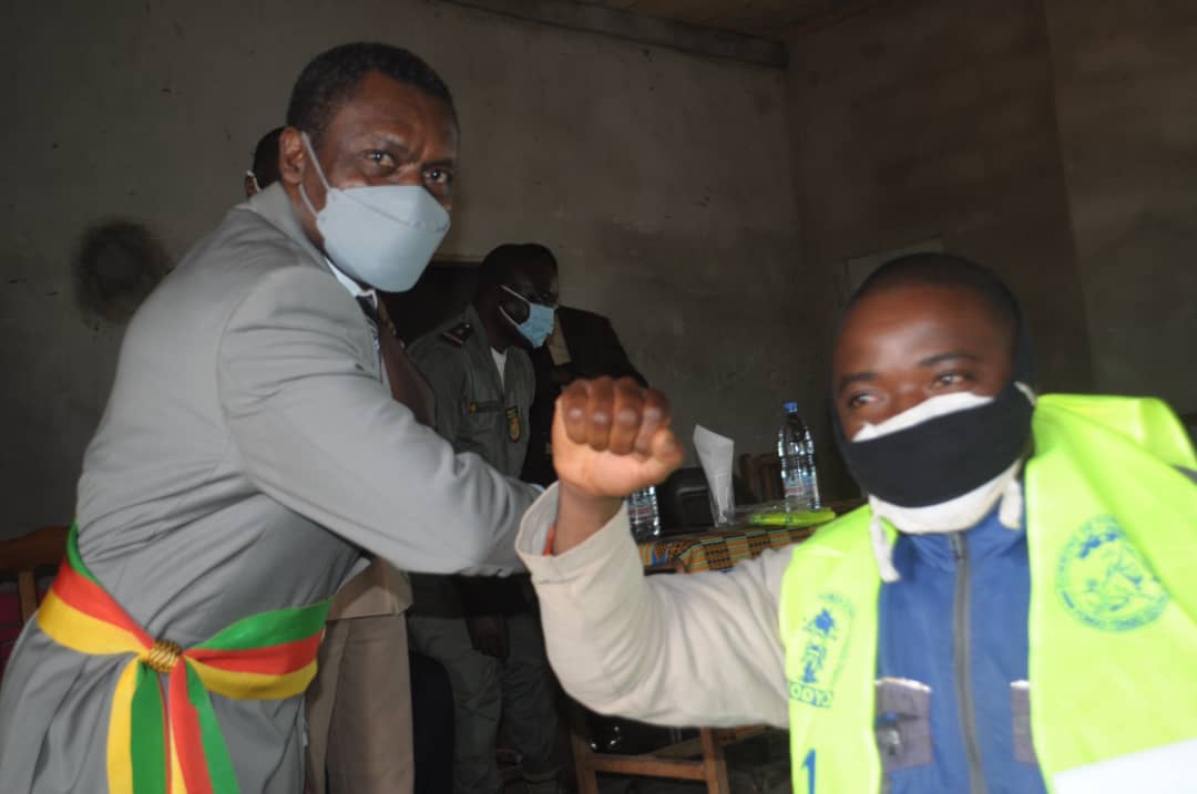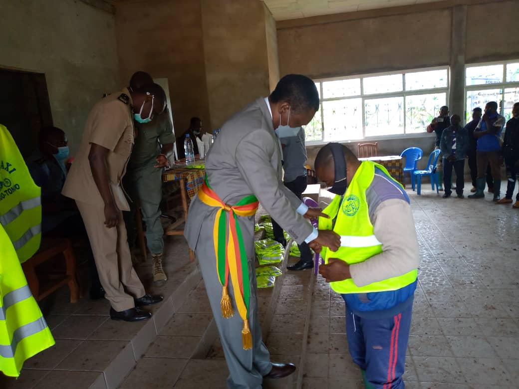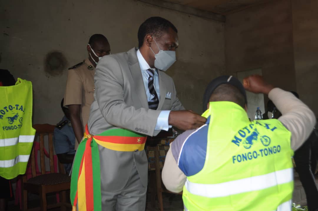 Le Maire de Fongo-Tongo a présidé ce mardi 18 août 2020 dans la salle de réunions de l'hôtel de Ville de Fongo-Tongo, la cérémonie de remise de 300 chasubles aux conducteurs de motos taxis de Fongo-Tongo.