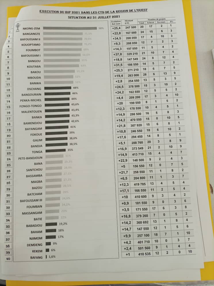 Félicitation à la Commune de Nkong-Zem dans la Menoua qui est classée en tête de liste dans l'exécution du BIP 2021 à l'ouest.
