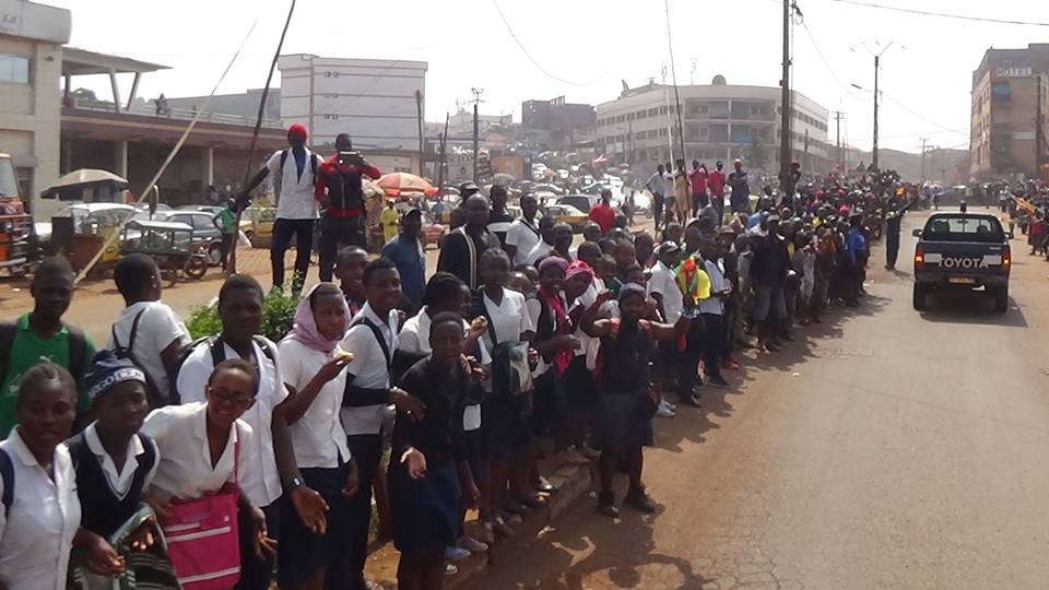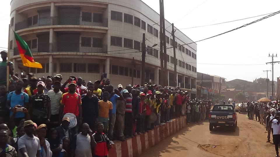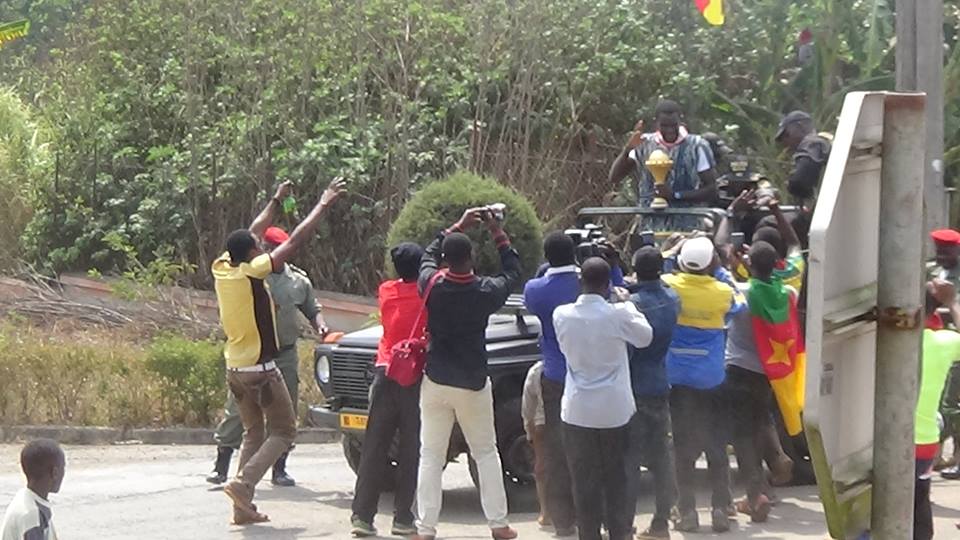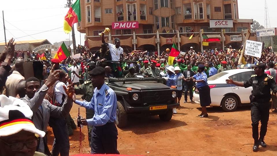Après l’étape de Yaoundé dans le centre, c’était à la région bamiléké d'accueillir la caravane des lions indomptables relative à la présentation du trophée de la CAN Gabon 2017. un jour spécial, un peuple spécial pour une équipe victorieuse; considéré par certains hommes politiques comme le seul parti de tous les camerounais, la caravane de la présentation du trophée a fait des vagues dans la région du soleil couchant; tous ,jeunes, vieux grand ,petits et tout petits, de toutes les couches sociales n'ont pas hésiter de sortir de tous les coins des rues pour témoigner leurs actes de patriotisme ,d'unité et de dynamisme au passage des lions indomptable du Cameroun.