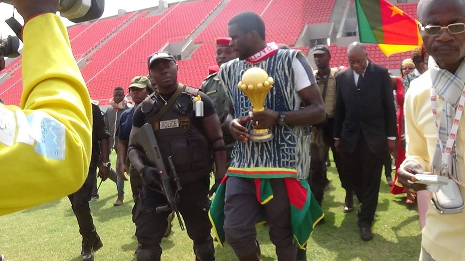 Accueillit par le préfet du département du Nde Oumarou Haman Wabi, en symbiose avec le préfet du département du koung-khi, Antoinette Zongo, le trophée serra escorte jusqu'à mbo badjoun où le Gouverneur de la région de l'ouest prendra le relais de la caravane avec pour premier point de chute la chefferie supérieure de Bafoussam afin de recevoir les hommages et la bénédiction des ancêtres de Foussap. le cortège empruntera par la suite l'itinéraire prévue pour la circonstance avec une escale au monument du cinquantenaire de la jeunesse ,puis au stade municipale de Bafoussam pour la prise de photos de famille ,puis suivra l'étape de la national n°6 jusqu'au carrefour Congelcam ,avant d'emboiter le pas pour le monument du soldat inconnu où une gerbe de fleur a été déposer en mémoire de ces veillant guerrier ,la dernière étape marquera un saut d'arrêt au domicile du Noa-lion Adolphe Teikeu Kamgang sis au quartier banengo de Bafoussam ,qui serra d'ailleurs hautement saluer par les populations riveraines et ses parents biologique ;c'est n'es qu'aux environs de 16h30 que la grande caravane prendra la direction de la tribune officielle de Bafoussam pour les allocutions des différentes personnalités du pays ,au rang du quel le ministre des sports et de l'éducation physique ,celui de du président de la FECAFOOT Tombi Aroko Sidiki et biens d'autre. C’est n'es qu’aux premières heures de ce mercredi matin que la grande caravane prendra le chemin du NORD -OUEST Bamenda. En rappel l’opération s'inscrit dans la mission allouée par le chef de l’État son excellence Paul Biya afin de présenter la victoire de la Can 2017 a tous les camerounais.
