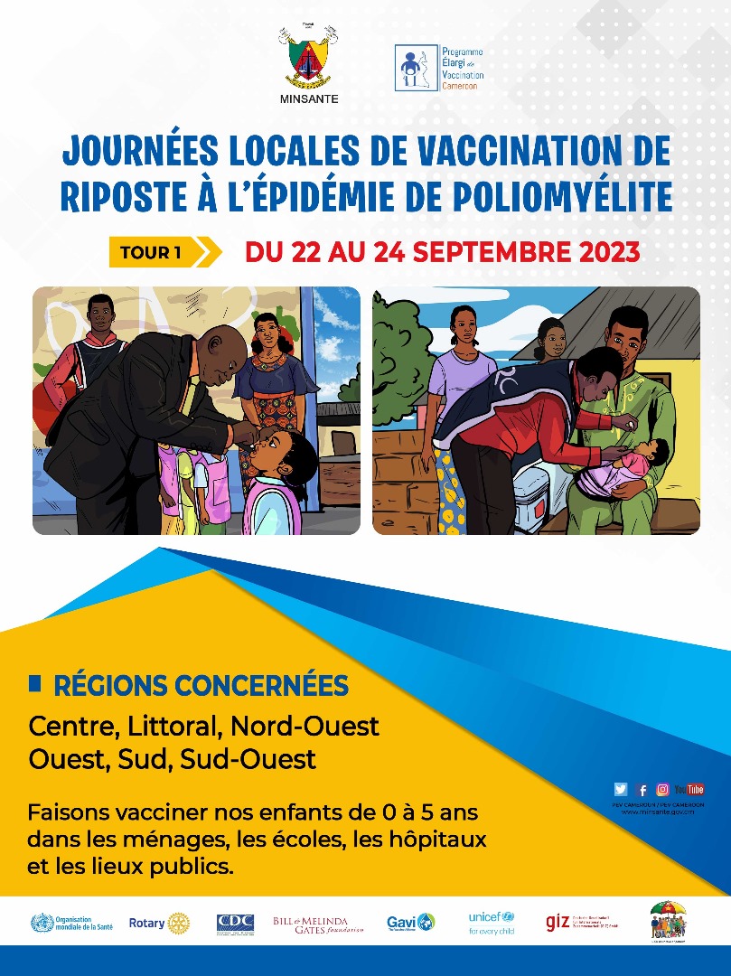 Cette première campagne de vaccination gratuite organisée par le gouvernement camerounais au profit des enfants âgés de 0 à 5 ans, s'étendra du 22 au 24 Septembre prochain. Cinq régions sont concernées, notamment la région de l'Ouest Cameroun et près de deux millions (2.000.000) d'enfants, bénéficieront d'une prise en charge gratuite pour prévenir cette maladie contagieuse, paralysante et tueuse.