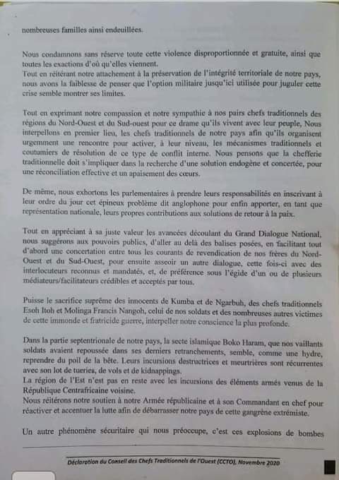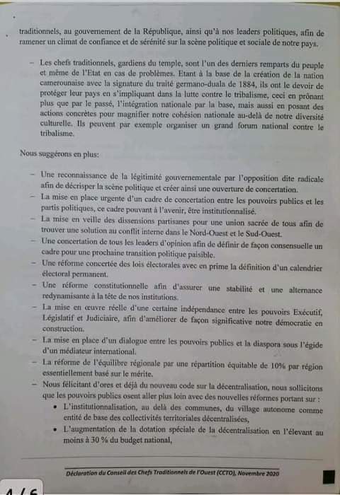 Ils reconnaissent par ailleurs que l'option militaire dans le NOSO a montré ses limites. Ils recommandent au parlementaires d'introduire le dossier du Nord-Ouest et du Sud-Ourst à l'ordre du jour au parlement.