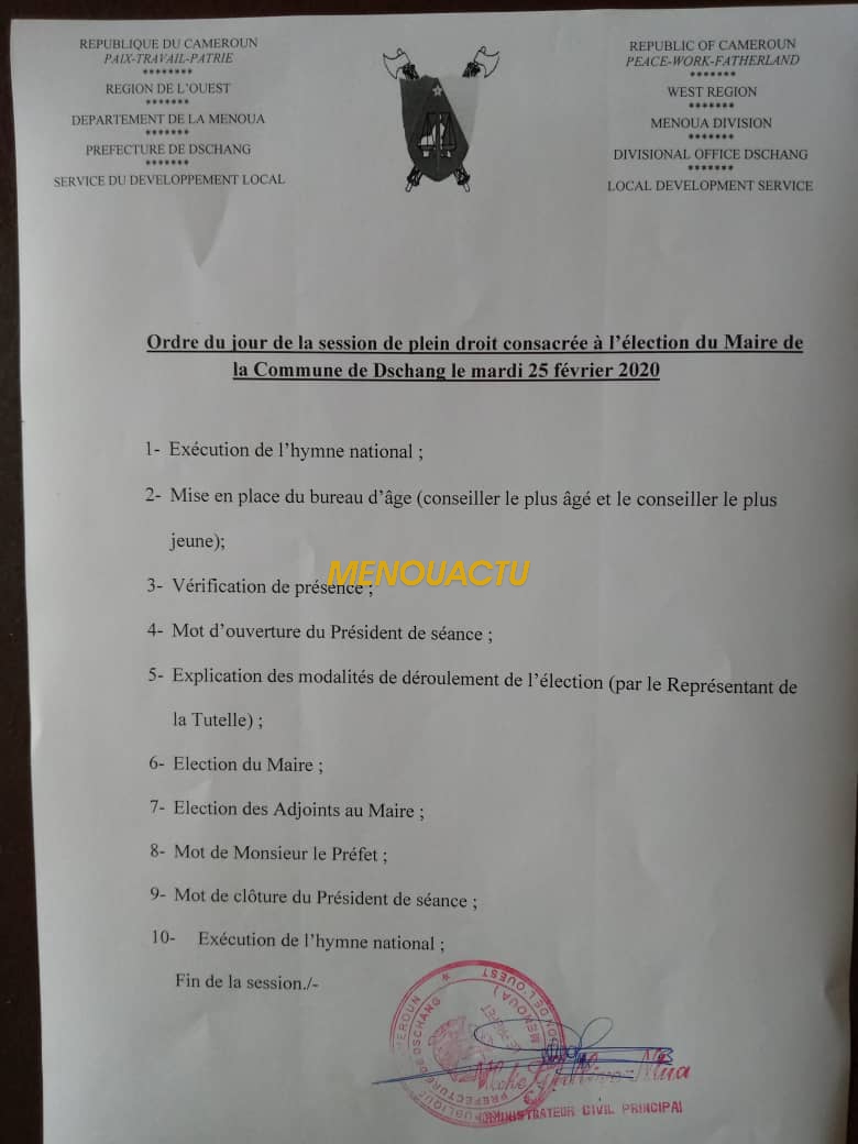 Voici le programme de la session publié par le préfet Mboke Godlive Ntua de la Menoua