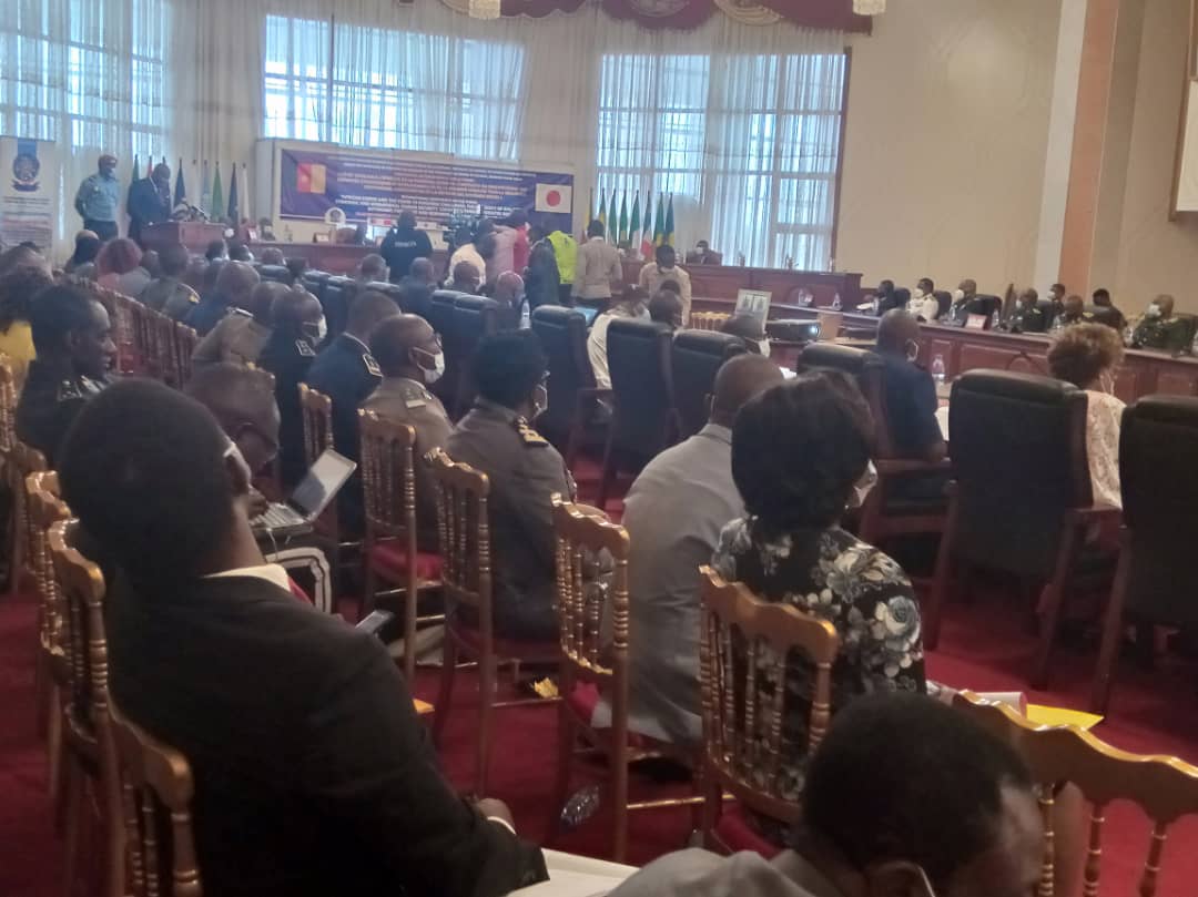 Après l'ouverture des travaux par le Secrétaire d'État à la Défense chargé de la Gendarmerie Nationale représentant le ministre délégué à la présidence chargé de la Défense et PCA de L'EIFORCES, Dr PASSO SONBANG ÉLIE, Commissaire Divisionnaire Directeur du Centre de Recherche et de Documentation de L'EIFORCES est monté au pupitre pour la présentation de l'activité, de sa problématique, et des ateliers, suivi par une Dame au Savoir imposant Pr. GANA FOMBAN LEKE ROSE pour la leçon inaugurale.