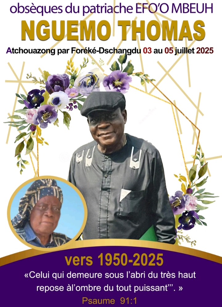 Aujourd'hui, le corps de papa Nguemo Thomas repose à la morgue de l'hôpital régional annexe de Dschang et sera officiellement inhumé le samedi 5 juillet prochain dans son village natal à Foreke-Dschang.
