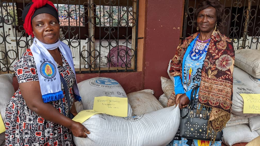C'est au cours d'une cérémonie très sobre qui rassemblait les membres du Réseau des Associations Femmes et Familles de l'arrondissement de Dschang, toutes les présidentes de sous-section Ofrdpc de la Menua centre 1 que le Professeur Tsafack Nanfosso a offert 100 sacs d'intrants agricoles à 100 femmes dynamiques venues des différents groupements que compte l'arrondissement de Dschang.