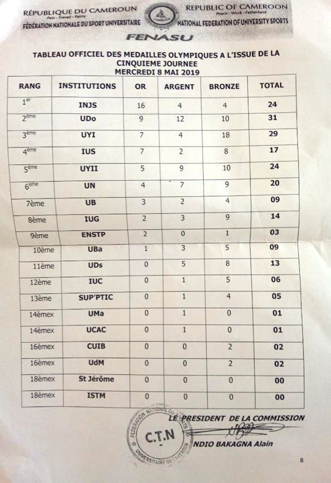Rendues à une journée de la fin de cette compétition olympique, les protégés du Pr. Tsafack Roger Pepin Nanfosso de l'université de Dschang toujours sans médaille d'or au soir du 08 mai 2019