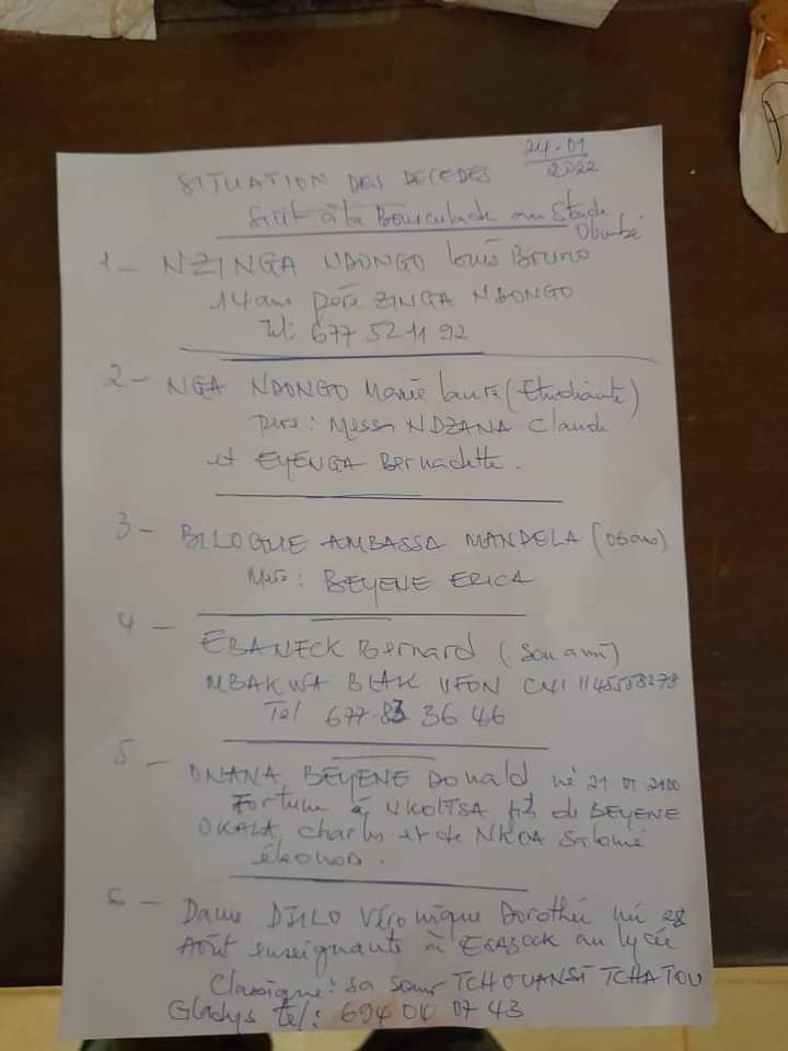 Tous ces hommes et femmes pour la plupart des supporteurs de football y ont trouvé la mort au moment où le Cameroun et le Comore livraient le match comptant pour les 1/8 de finale de la coupe d'Afrique des nations.