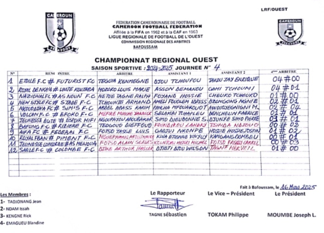 Ce dimanche, lors de la 4e journée du championnat régional de l'ouest, le Royal FC de Nka'ah a remporté une victoire écrasante face à l'Unité de Koutaba au stade du Cenajes de Dschang.